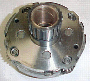 The AW 550 SN planet is a two bushings design. The bushing next to the gears is poorly supported. It spins in its housing, and until now has ruined the planet. We carefully bore the housing and install a one piece bushing. The bushing area now has plenty of support.