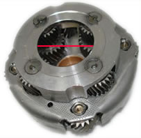 To be sure you order the correct planetary, measure the diameter of the opening in the back of the planet. The red line represents the area to be measured.